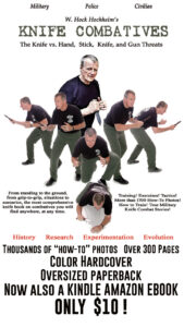 I did a little knife work in Parker Kenpo in the early 1970s and there were some sessions in the Army, but I started serious training with the knife in 1980s with Paul Vunak, then the Inosanto family. Paul said, “In a jam, you never really know how you will “snatch” up a knife, so you’d better know both grips.